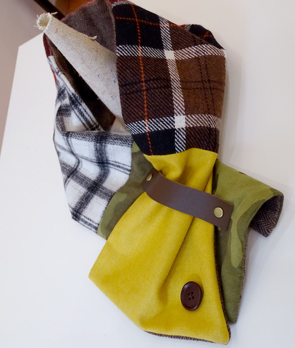 ウールや起毛のスクエアな生地を縫い合わせて、オリジナルのミニマフラーを作ります。