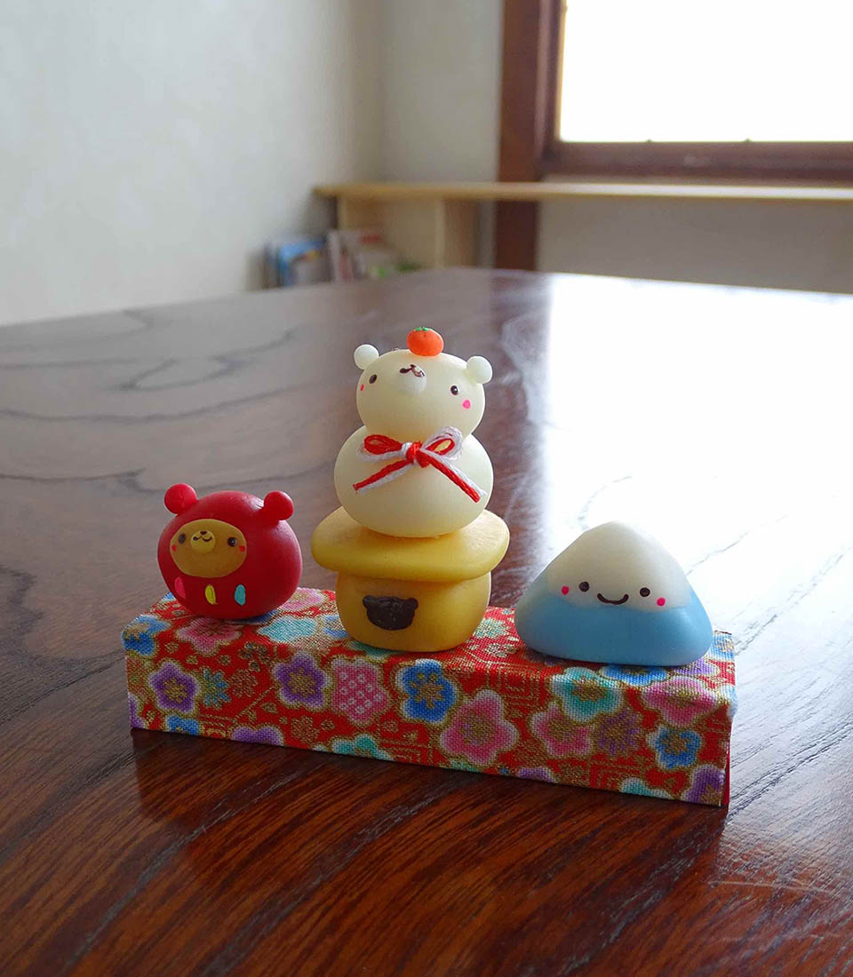 クマさんの鏡餅、ダルマっくま、富士ちゃん